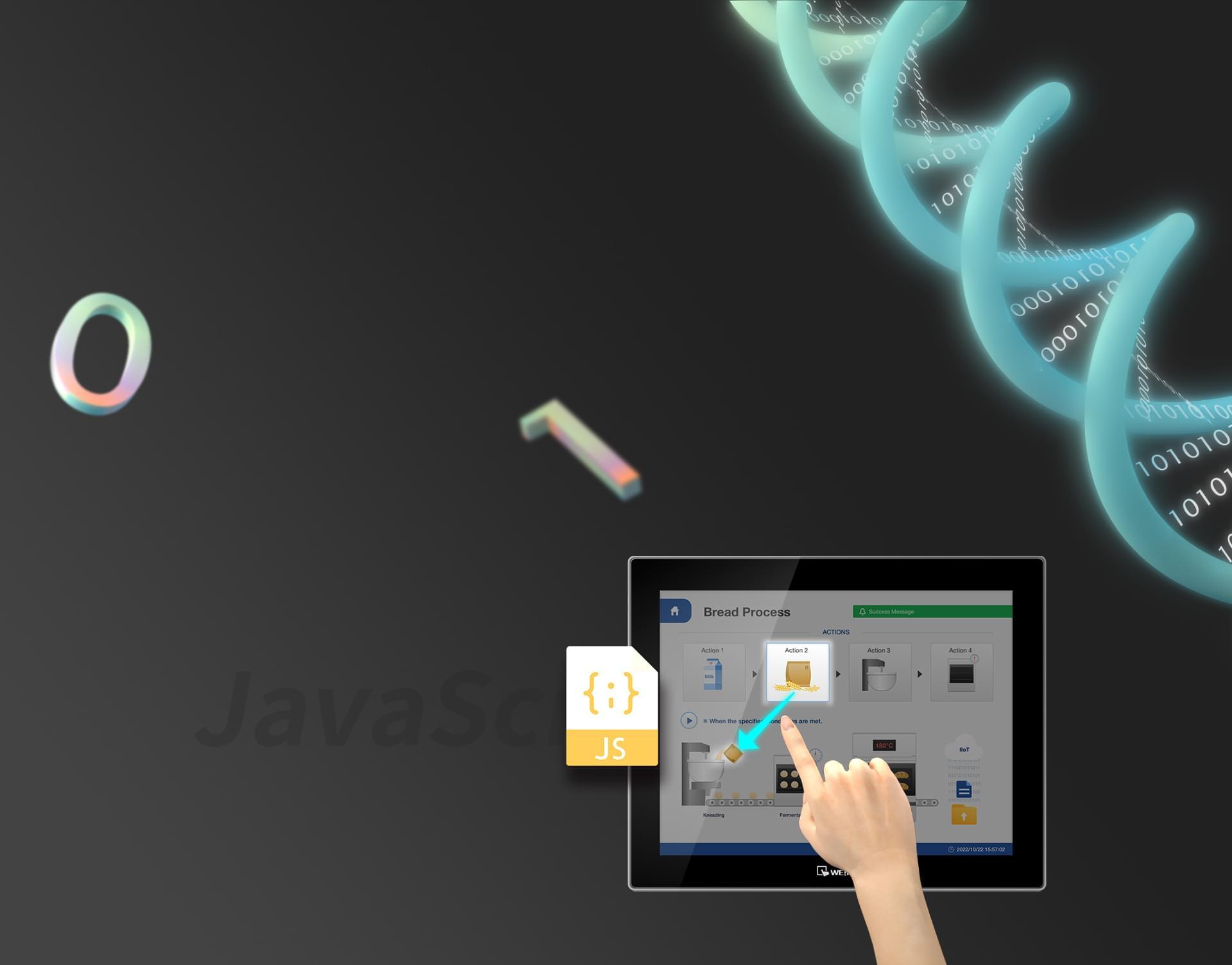 開發者可以編寫 JavaScript 定制專屬功能,并且能夠串接 WebAPI,突破現有框架限制,將 HMI 彈性定位兩大領域。