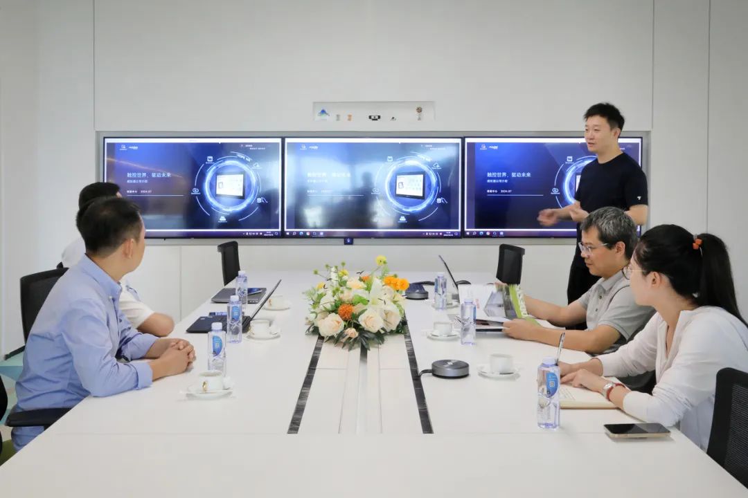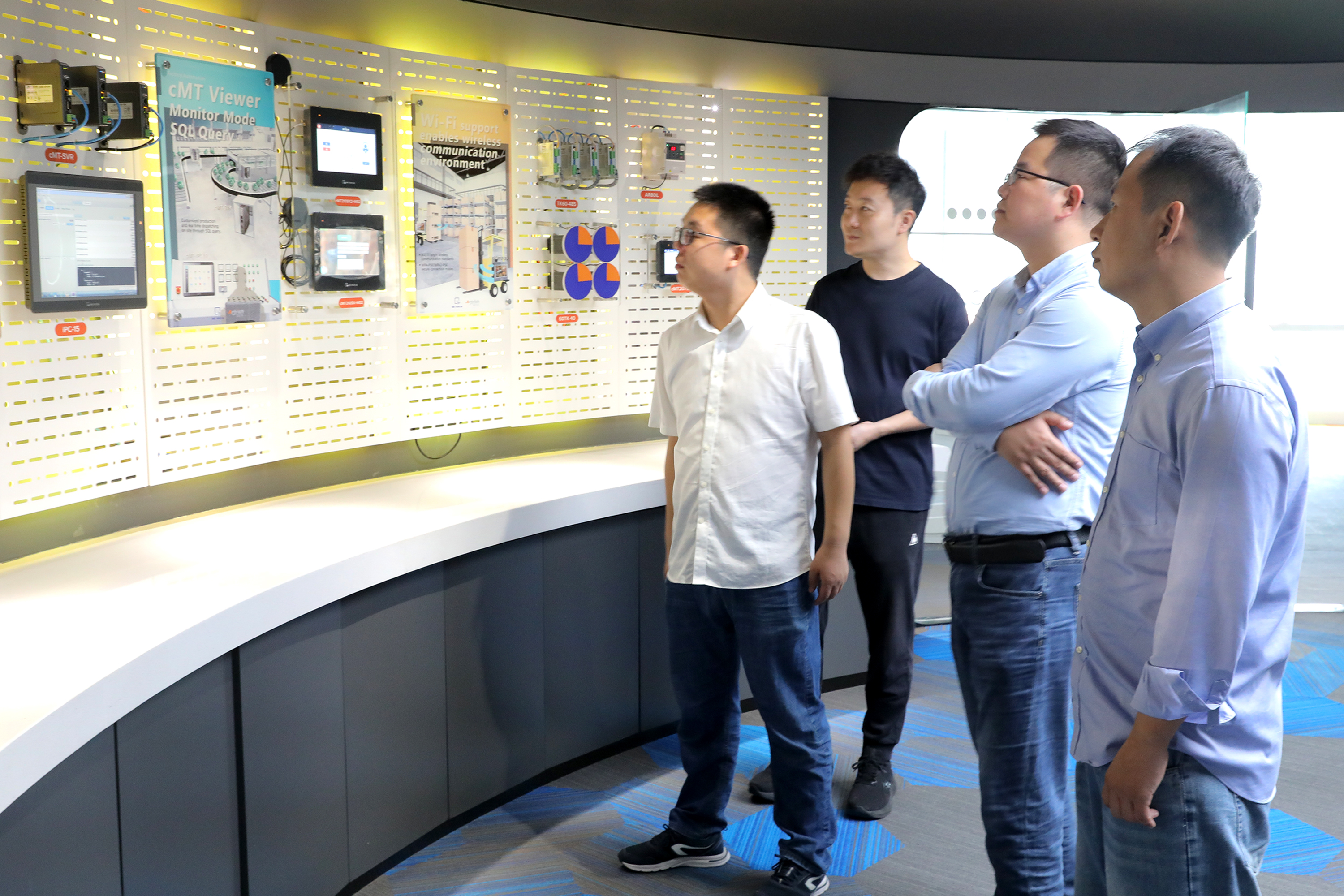 參觀過程中,劉成林向來訪領(lǐng)導(dǎo)介紹了威綸通企業(yè)發(fā)展歷程以及新一代cMT X系列云端監(jiān)控HMI產(chǎn)品,通過現(xiàn)場演示與互動體驗,展示威綸通完全運(yùn)用自主控制系統(tǒng)(HMI+I/O)結(jié)合CODESYS軟PLC方案實現(xiàn)的對現(xiàn)場能源管理、照明、空調(diào)、窗簾、電源、音響等設(shè)備進(jìn)行管理的自動化智能辦公系統(tǒng)。讓HMI與CODESYS相結(jié)合的優(yōu)勢展露無余。CODESYS(歐德神思)對威綸通的創(chuàng)新能力和研發(fā)實力給予了高度的認(rèn)可。